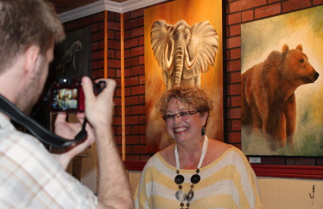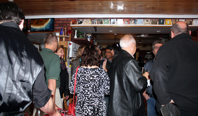 Vendredi le17 mai 2013 avait lieu le vernissage des œuvres de Sylvie Desbiens cinq des tableaux exposé ont été vendu et l’artiste à fait tirer un petit tableau et a remis les profits de ce tirage au Bistro afin d’en soutenir le financement. Un grand merci Sylvie