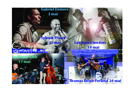 24 mai – Thomas Bélair Ferland, musicien chanteur et guitariste, Sylvain Tremblay Percussions, Antony Veilleux à la basse. Folk Pop Tantôt drôle, tantôt touchant, il essaie de toucher à toutes les cordes de son arc en chantant l’amour, l’humour et sa réelle passion pour la musique.