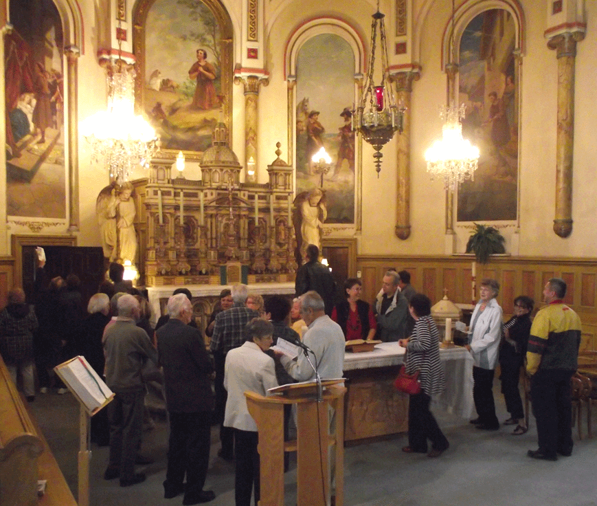 Visite guidé de l’église qui a réalisé les peintures, les sculptures, le chemin de croix, la chair, etc.