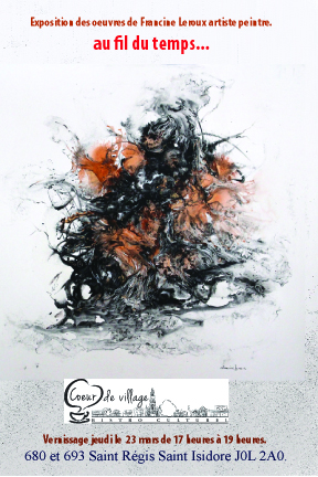 Venez assister au vernissage de la nouvelle exposition jeudi le 23 mars.